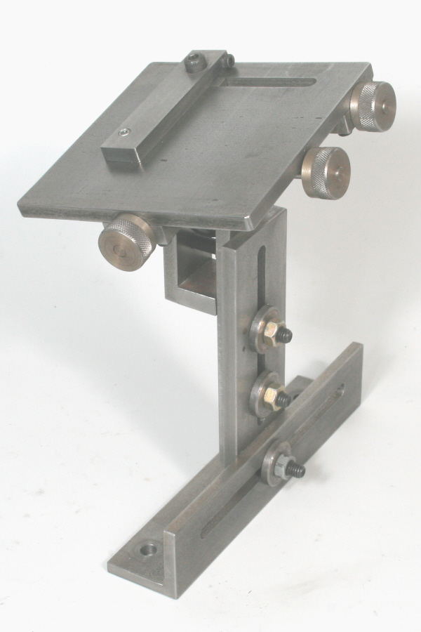 The rest is nearing completion. The upright pillar is shortened and rotated 90 degrees, seen from the top. I added a few features similar than the advanced rest. The table can now be rotated, Tilted forward, backward, right and left for almost 90 degrees. As said, it may be an overkill, but I may need it in future. I must still add the handled lever studs. The cap screws are temporary.